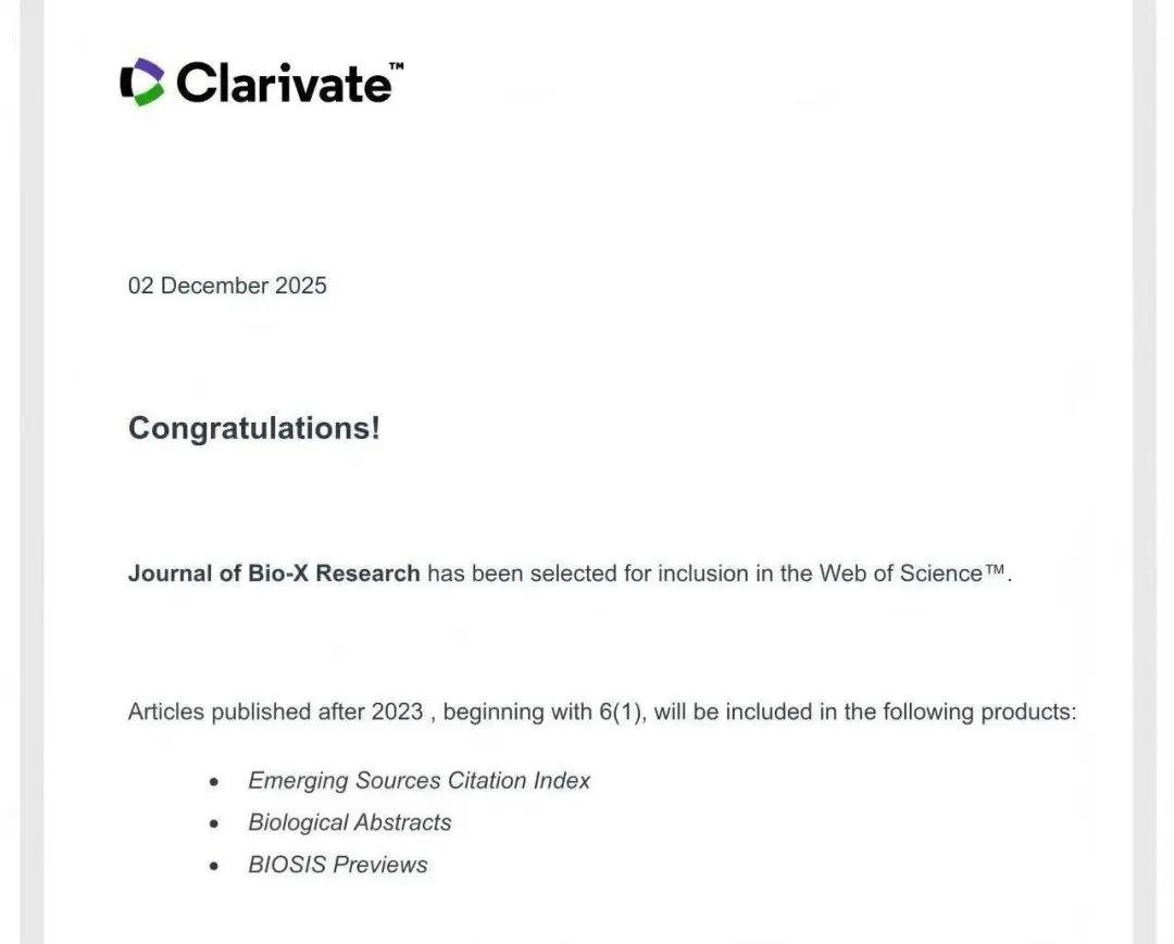 [转载] 祝贺《Journal of Bio-X Research》被ESCI等三大数据库同时收录,2026年将获首个影响因子